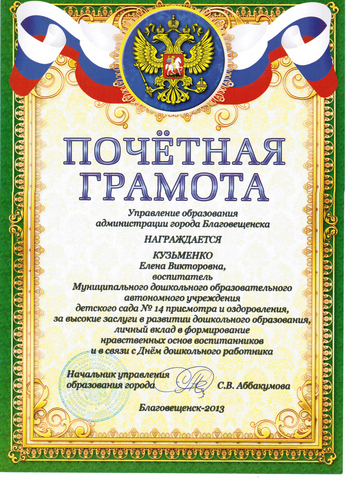 2. ФГБОУ ВПО «Дальневосточный государственный гуманитарный университет», 2013 г.; педагог-психолог.